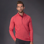 Experience the unexpected warmth of the Calibre mid-layer, a men's mid-weight quarter-zip pullover that combines enhanced functionality with refined simplicity. This garment features a mock neck topped with a durable vislon zipper and is crafted with raglan sleeves to facilitate unrestricted movement. The interior is brushed for a supremely comfortable feel. It is tailored with banded cuffs for a snug fit, engineered side panels for a streamlined look, and underarm perforated venting holes for optimal breathability, ensuring that it keeps you warm without sacrificing comfort or mobility.
