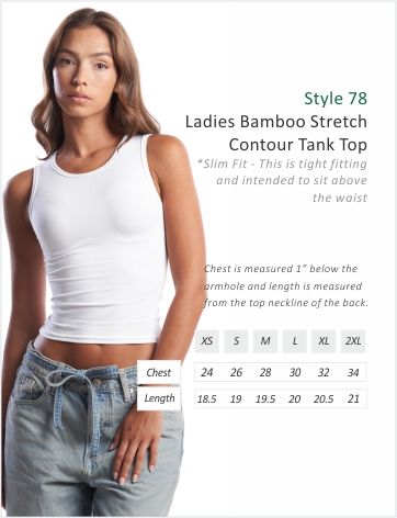 This is a tank top designed to fit tight. It’s made with our enviable Bamboo Stretch Fabric - stretchy with a silky soft feel. Intended to hit around the waist - perfect for everyday.